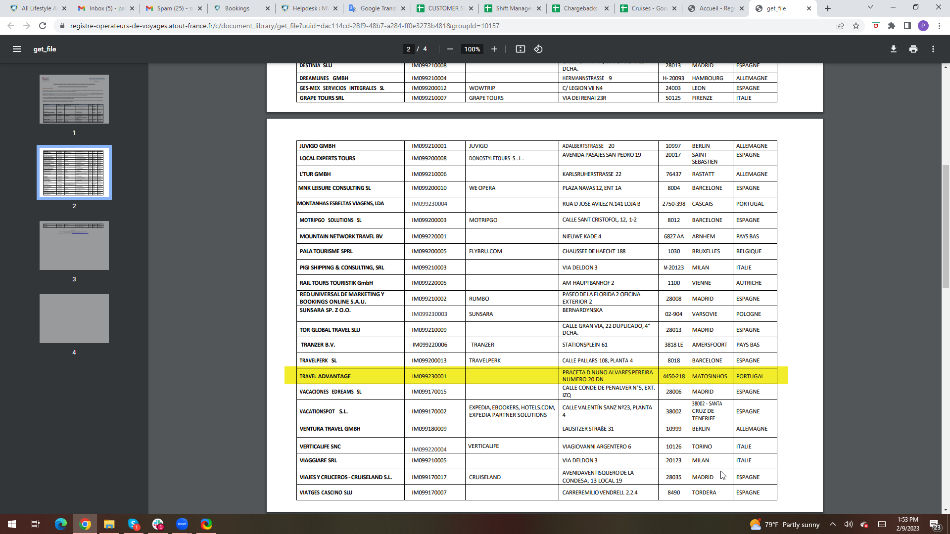 Vous serez redirigé vers ce document, où la société est répertoriée sous le nom Travel Advantage :